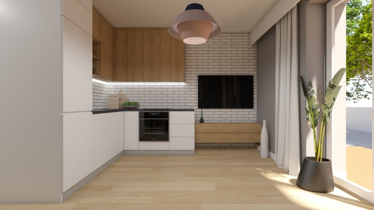 *spokój z aneksem kuchennym i wyjściem na taras