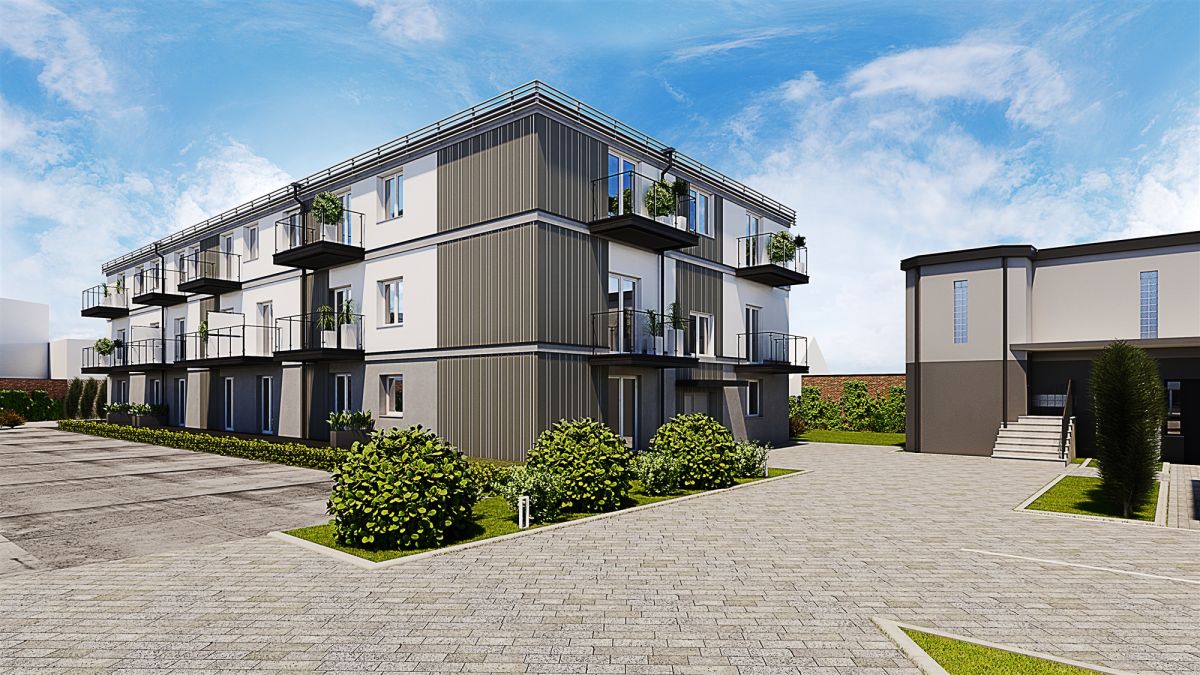 * Trzykondygnacyjny budynek wielorodzinny to ponadczasowa bryła budynku i 38 lokali mieszkalnych o powierzchniach od ok 22 m2 do ok 36 m2 .